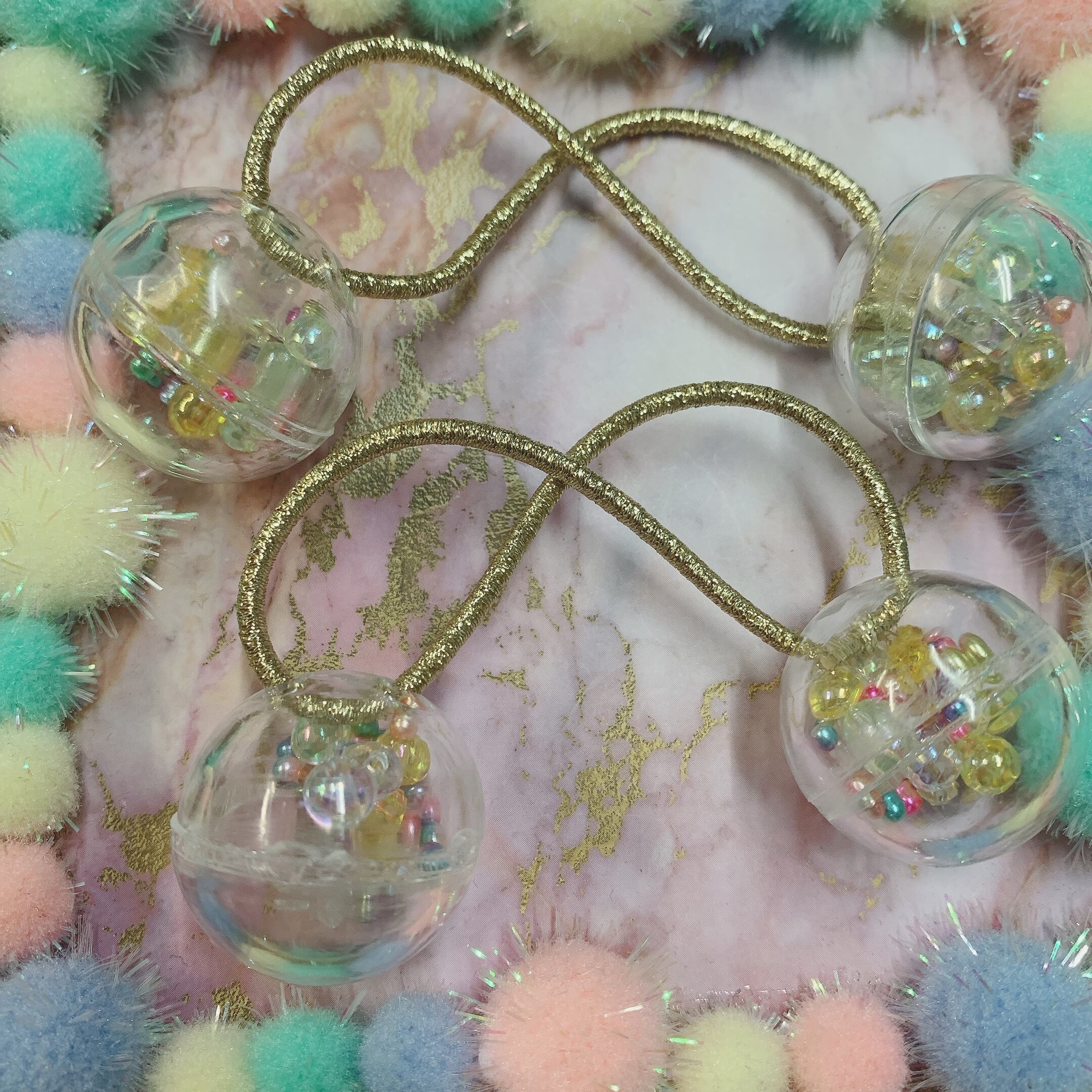キラキラやビーズが入ったボンボンヘアゴム(?????)