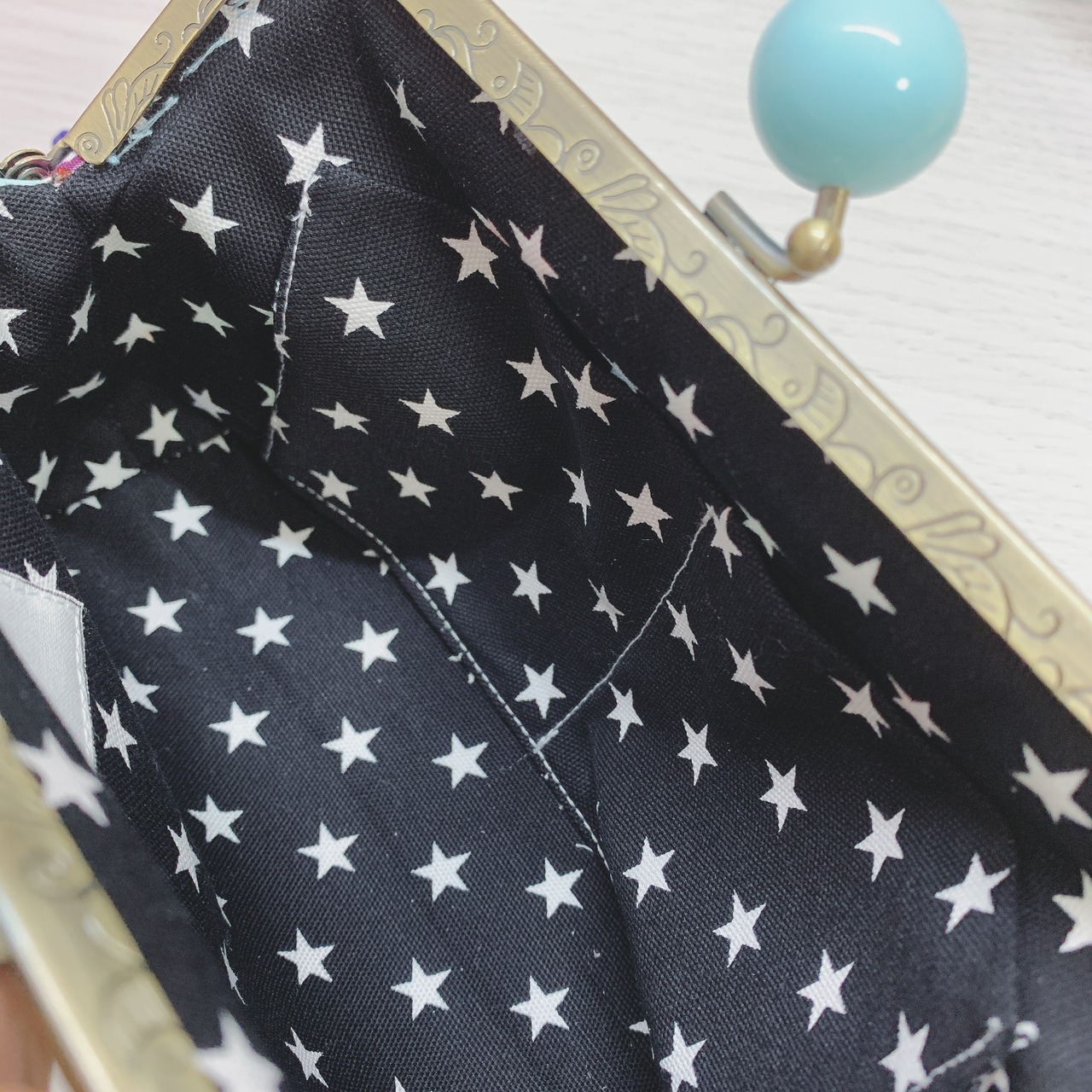縫いつけタイプのがま口の為、裏側にあまり目立ちませんが縫い目が見える箇所などある場合があります。